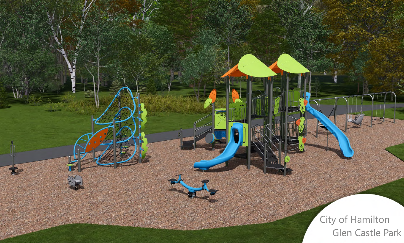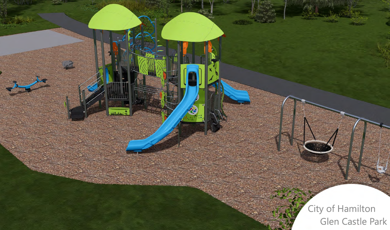 The City is planning to replace the playground at Glen Castle Park, located at 30 Glen Castle Drive (Ward 5) in Hamilton’s Red Hill neighbourhood. The park includes bocce courts, open grass areas, and a playground.